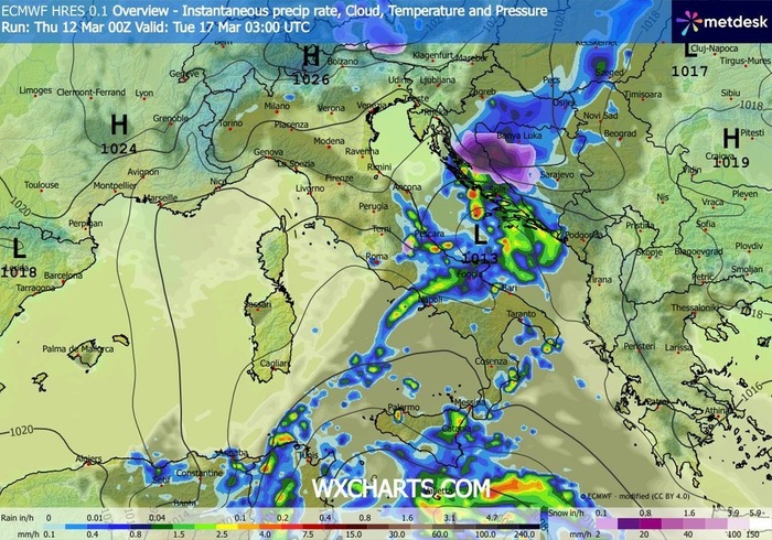 La situazione sinottica cambierà gradualmente dopo il weekend. Il vortice in avvicinamento all'Italia nelle prossime ore e in arrivo sul nostro Paese nel fine settimana, scivolerà verso il basso Mediterraneo, posizionandosi tra la Sicilia e la Tunisia. Questo movimento permetterà a correnti di aria fredda provenienti dai Balcani di affluire verso il nostro Paese, a partire da Martedì 17 Marzo. Non si tratterà di un'irruzione gelida, ma di un cospicuo rimescolamento d'aria che abbasserà le temperature di un bel po' di gradi, riportandoci su valori decisamente più consoni al periodo dopo aver assaggiato un tepore anticipatamente primaverile.