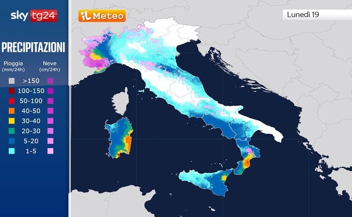 Anche le regioni settentrionali subiranno effetti, soprattutto sulle Alpi occidentali, con nevicate abbondanti oltre i 900-1000 metri.