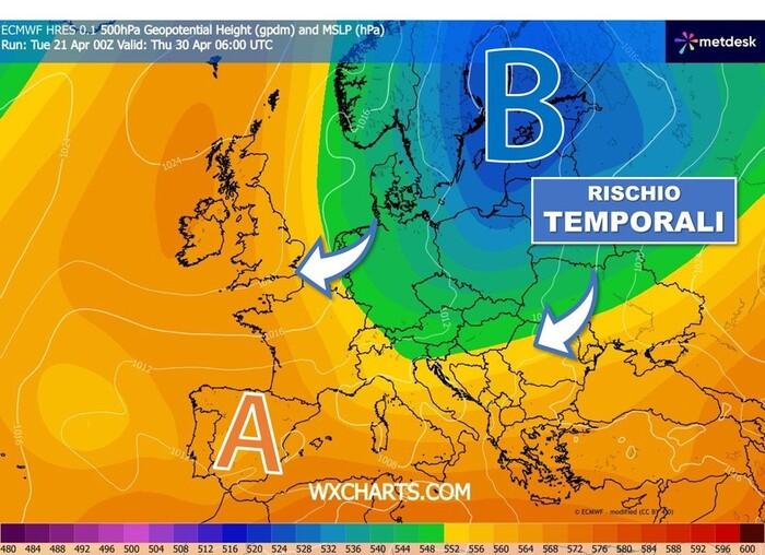 Tuttavia, questa rinnovata stabilità non è destinata a durare a lungo. Gli ultimi aggiornamenti, infatti, hanno confermato un guasto del tempo provocato dall'arrivo di una perturbazione temporalesca in discesa dal Nord Europa, a partire dalla giornata di Mercoledì 29 Aprile quando una vasta area depressionaria scivolerà dalle alte latitudini scandinave verso il Mediterraneo. Questo corridoio di correnti settentrionali punterà dritto verso l'Italia, portando con sé non solo un calo delle temperature, ma anche precipitazioni intense.