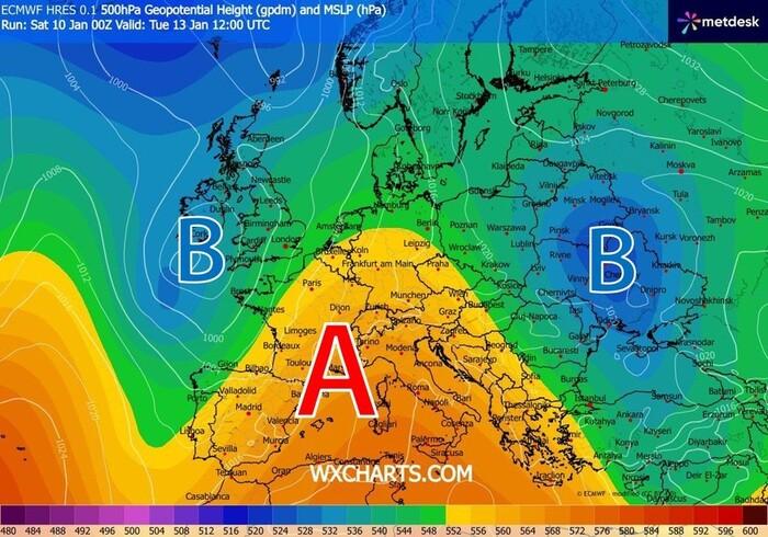 Salvo per deboli piovaschi (Martedì 13 e Mercoledì 14 Gennaio) su Liguria e regioni tirreniche, queste condizioni dovrebbero accompagnarci almeno fino a metà mese.