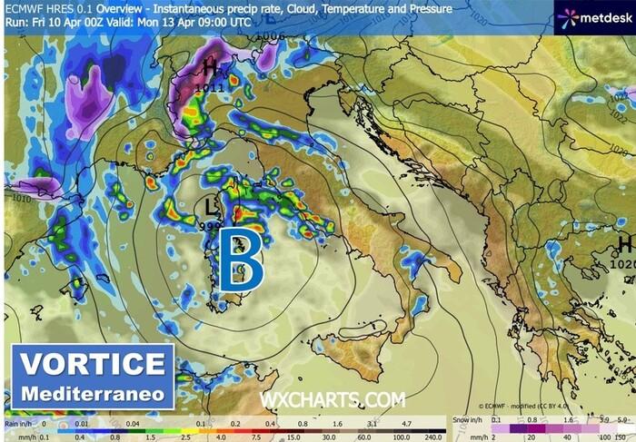 Da Lunedì 13 Aprile Vortice Mediterraneo in formazione, peggioramento del tempo
