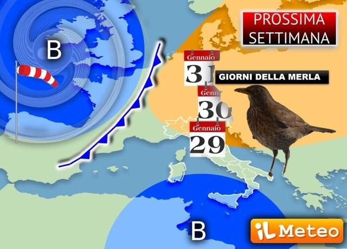 La tradizione popolare identifica il 29, 30 e 31 Gennaio come i Giorni della Merla, storicamente considerati i più freddi dell'anno. La leggenda narra di una merla bianca che, per sfuggire al gelo improvviso scatenato da un Gennaio infuriato, si rifugiò in un camino, uscendone nera di fuliggine.