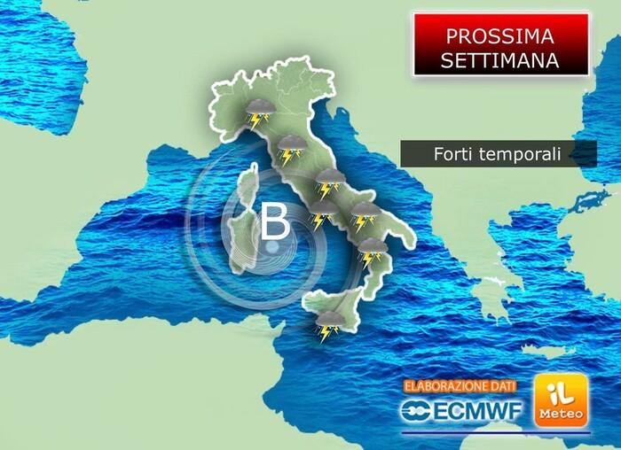- dall'altro, subirà un'ulteriore spinta dalle correnti più fresche ed instabili in discesa dal Nord Europa.
