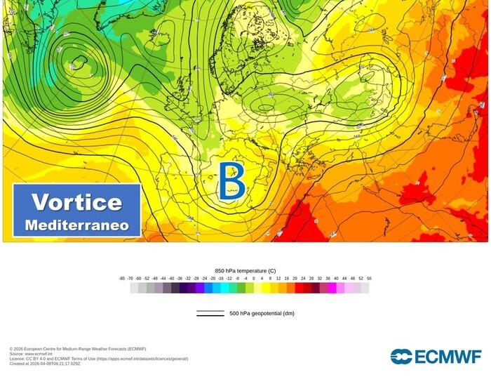 Già tra Lunedì 13 e Martedì 14 Aprile le condizioni meteo sono previste in peggioramento. Il protagonista sarà un vortice in risalita dal Nord Africa, una figura spesso insidiosa per il bacino del Mediterraneo.