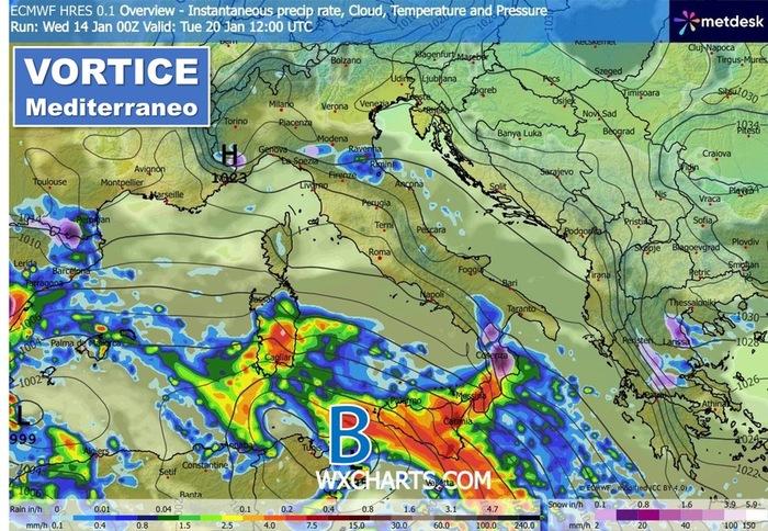 L’aria fredda proveniente dall’Atlantico scenderà verso il Mediterraneo, favorendo la formazione di una saccatura in quota che poi si isolerà in un vortice di bassa pressione. Il contrasto tra aria fredda e acque ancora calde renderà il sistema instabile e persistente, con fenomeni atmosferici intensi per diversi giorni.
