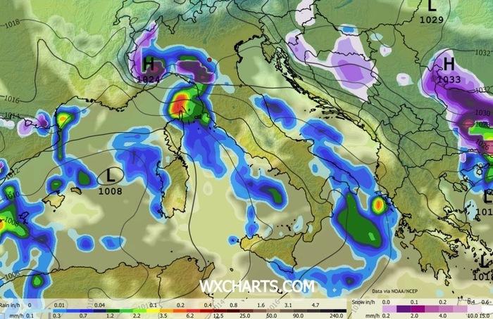 Con l’ulteriore spostamento del vortice verso le Baleari, il maltempo tenderà a concentrarsi sempre più sui settori occidentali, coinvolgendo ancora l'Emilia, il Nord-Ovest e ampi tratti del versante tirrenico centrale, tra Toscana, Lazio e Sardegna. Attenzione ancora alla neve, che continuerà a cadere fino a bassa quota sui rilievi alpini tra Lombardia, Valle d’Aosta e Piemonte, oltre che sull’Appennino ligure e tosco-emiliano.