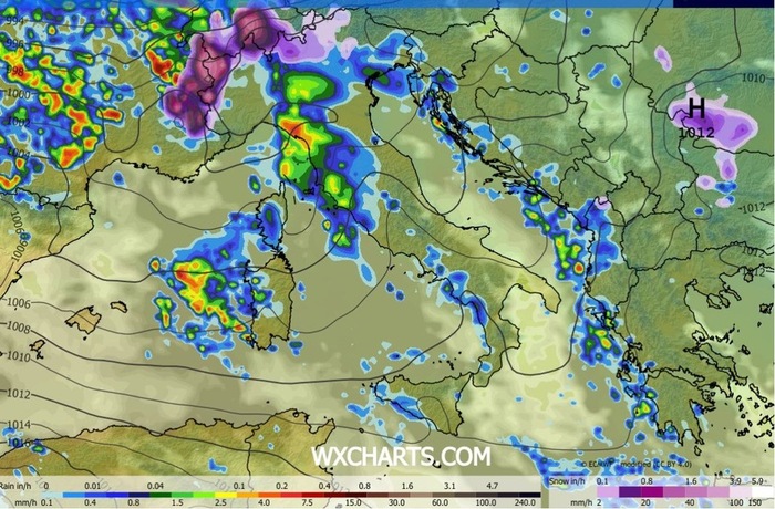 Tra la sera e soprattutto durante la notte la perturbazione avanzerà verso levante, portando piogge sparse anche sul resto del Nord, mentre il maltempo tenderà a intensificarsi sulle regioni centrali, in particolare sul versante tirrenico, dove oltre alle piogge potranno svilupparsi anche improvvisi temporali. Qualche piovasco raggiungerà infine l’area del basso Tirreno e la Sicilia.