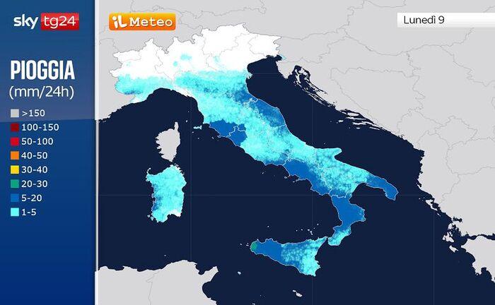 Già dal mattino, un mix di nebbie e nubi dense interesserà le regioni del Nord, in particolare i settori pianeggianti, dove non si escludono deboli piovaschi o episodi di pioviggine, soprattutto sull’Emilia-Romagna e successivamente sulle restanti aree del Nord-Est. Nubi e piogge sparse sono attese anche sul versante adriatico, sia del Centro sia del Sud, con qualche piovasco possibile anche sul basso Tirreno.