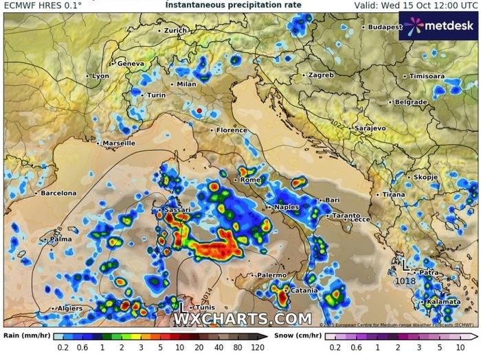 Da segnalare che le precipitazioni più abbondanti e i temporali più violenti sono attesi in mare aperto e questo perché le acque dei nostri mari sono ancora calde, risultando un vero e proprio serbatoio di energia per lo sviluppo di una fenomenologia molto significativa. Tuttavia, piogge a tratti torrenziali, accompagnate da intensi temporali, potranno comunque manifestarsi anche in molte aree dell’entroterra.