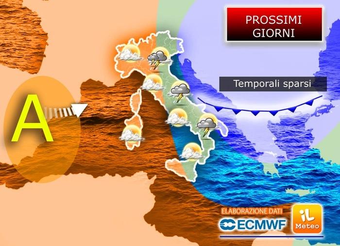 dove al mattino potranno ancora verificarsi ultimi piovaschi tra la Calabria meridionale e la Sicilia orientale; dall’altro, l’alta