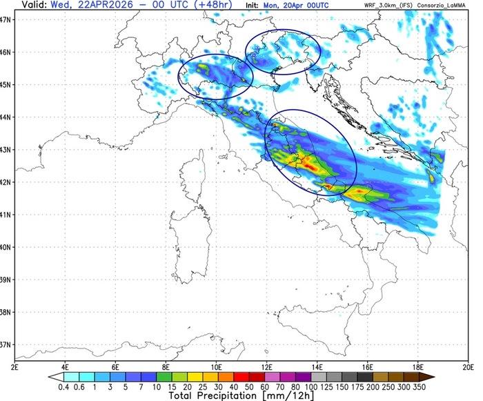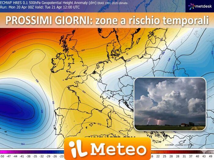Nel corso della giornata di Martedì 21 Aprile ci aspettiamo il transito del fronte temporalesco foriero di un aumento dell'instabilità sulle regioni del Nord e su parte del Centro a causa dell'arrivo di correnti d'aria decisamente più fresche ed instabili in discesa dal Nord Europa che andranno ad interagire con il calore tuttora presente sul bacino del Mediterraneo.
