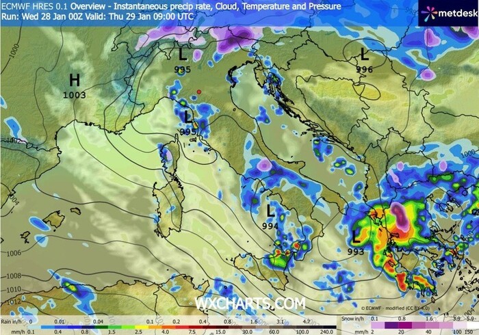 Nel corso della giornata di Giovedì 29 Gennaio dovremo fare i conti con gli strascichi della forte perturbazione che attualmente sta interessando il nostro Paese. Il quadro meteorologico assumerà caratteristiche di marcata variabilità, con fenomeni che si concentreranno in settori specifici: