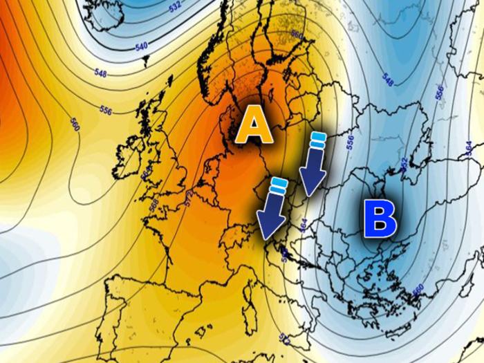 La causa va ricercata in un mix di fattori: un calo della pressione atmosferica e il successivo arrivo di masse d'aria fresca collegate ad una vasta e fredda circolazione ciclonica che dalla Russia si sta spostando proprio in queste ore verso le regioni più orientali del Vecchio Continente, destinata poi a raggiungere i Balcani.