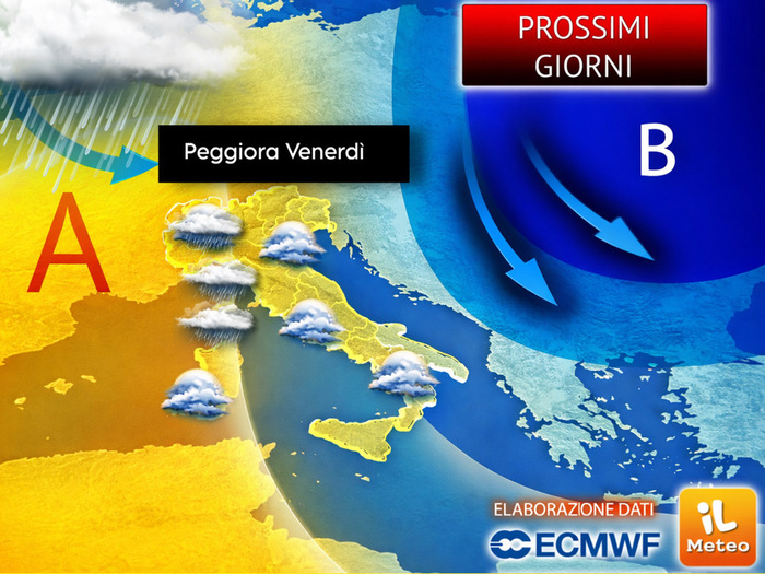 Attenzione però alla vigilia del weekend, perché da Venerdì 16 inizieranno a manifestarsi i primi segnali di un nuovo cambiamento. L’alta pressione comincerà infatti a perdere parte della sua forza e tenderà a spostare il proprio baricentro verso levante, in direzione dell’Europa orientale. A quel punto ne approfitterà il flusso instabile di origine oceanica, pronto a pilotare verso il nostro Paese una perturbazione atlantica.