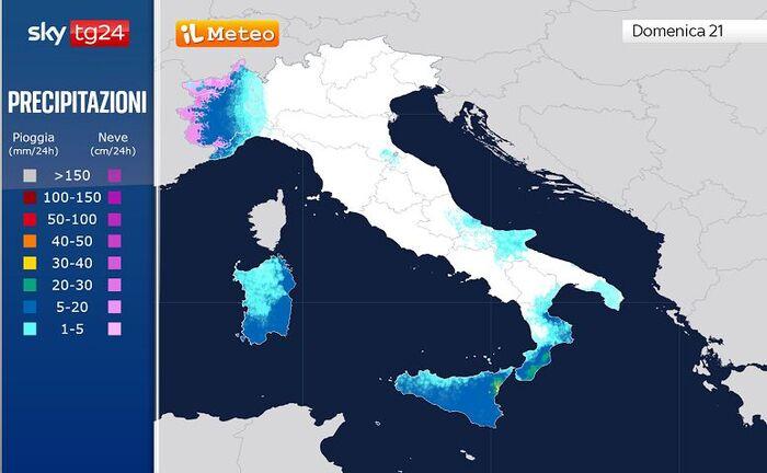 Con il passare delle ore, soprattutto tra il pomeriggio e la sera, qualche pioggia raggiungerà anche Liguria e Lombardia, mentre sulle Alpi occidentali la quota neve tenderà a calare, portandosi anche intorno ai 1000 metri.