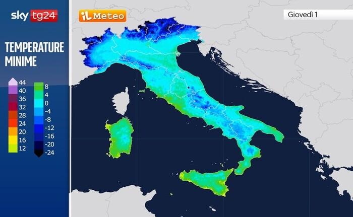 Secondo gli ultimi aggiornamenti non sono previste precipitazioni di rilievo per Capodanno, tuttavia registreremo un drastico calo delle temperature specie durante la notte e al primo mattino, con temperature sotto lo zero anche in pianura al Nord e nelle zone interne del Centro.