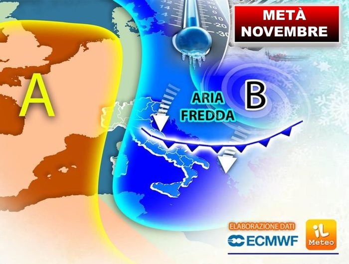 Nel corso della prossima settimana è previsto infatti il sopraggiungere di una serie di impulsi alimentati da correnti d'aria di origine artica la quale, scendendo direttamente dal Polo Nord, innescheranno un radicale cambio del tempo provocando un drastico calo delle temperature e le prime nevicate a bassissima quota.