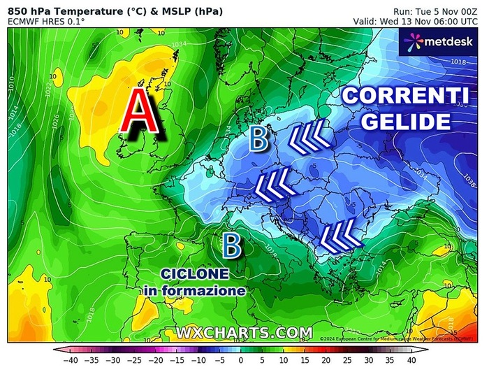 I motivi di questa svolta vanno ricercati nei grandi movimenti attesi a scala emisferica già tra il prossimo weekend e la giornata di Lunedì 11 Novembre quando, tra Scandinavia e Russia, si creerà una sorta di "scivolo" che consentirà alle correnti artiche di investire dapprima l'Europa orientale, per poi dilagare anche sul resto del Vecchio Continente; questo flusso gelido, dalle caratteristiche prettamente invernali, concluderebbe poi la sua corsa nel bacino del Mediterraneo, tuffandosi sia dalla Porta del Rodano, sia da quella della Bora.