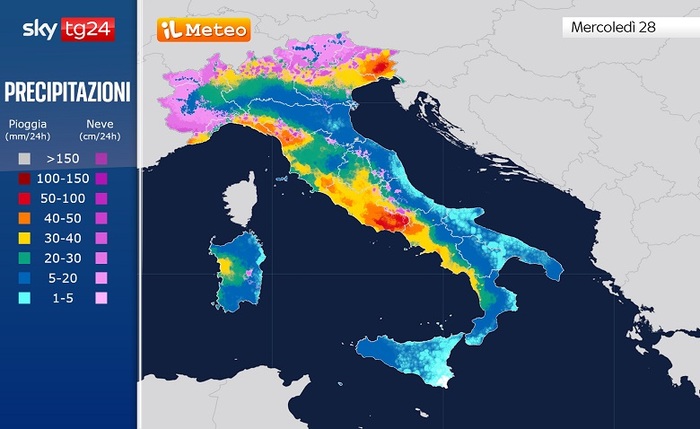 Quella di Mercoledì 28 Gennaio si preannuncia come una giornata particolarmente complicata sul fronte meteorologico per gran parte del Paese. Dopo una notte di forte maltempo che colpirà duramente la Liguria e il comparto tirrenico centrale, le precipitazioni si estenderanno a quasi tutte le regioni.