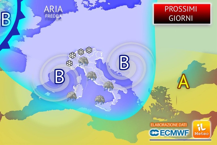 Già dalla giornata di Martedì 27 Gennaio si noteranno i primi segnali di un nuovo peggioramento. Dall’Atlantico si avvicinerà infatti l’ennesimo impulso perturbato che, a partire dal tardo pomeriggio e dalla serata, riporterà nubi e piogge inizialmente sulle regioni di Nord-Ovest e sulla Sardegna, in rapida estensione verso gran parte del settore tirrenico. Sarà solo l'inizio di una fase più acuta che si manifesterà nelle ore successive.
