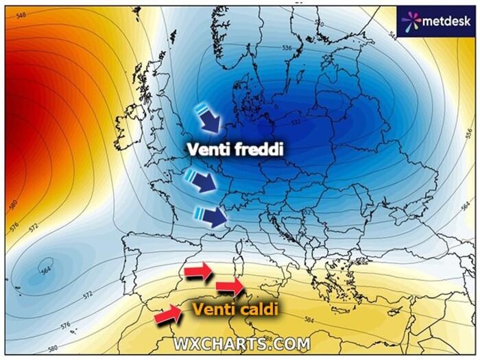 Sulle regioni del Nord e su parte del Centro, infatti, si faranno sentire gli effetti di correnti molto fredde in discesa dal Nord Europa, innescate dalla presenza di un’ampia circolazione ciclonica a ridosso dei paesi della Scandinavia. Nei prossimi giorni, proprio al Nord e nelle vallate più interne del Centro, durante la notte e nelle prime ore del mattino, complice anche il rasserenamento dei cieli (e dunque il fenomeno dell'irraggiamento notturno, ovvero una rapidissima dispersione del calore accumulatosi durante il giorno), le temperature scenderanno di parecchi gradi, avvicinandosi addirittura alla soglia dello zero sui fondi valle alpini e nelle conche più riparate del Centro. Non sono da escludere le prime gelate della stagione. Si starà meglio nelle ore centrali del giorno, dove tuttavia la tesa ventilazione produrrà una maggiore sensazione di fresco.