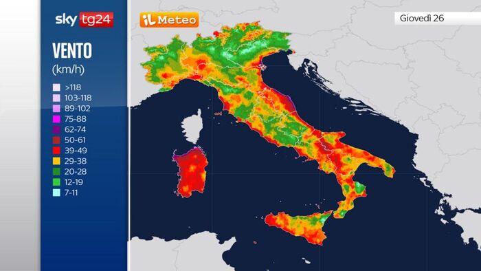 Il cambio di scenario si compirà Giovedì 26 Marzo, quando il vortice si approfondirà sui mari italiani richiamando l'aria artica. Al Nord-Est, la differenza di pressione scatenerà una Bora tempestosa che irromperà sul Triestino e sulle coste venete, con raffiche che potrebbero superare i 120 km/h. Contemporaneamente, il vento ruoterà bruscamente da Nord-Nord-Ovest sul resto del Paese: venti impetuosi superiori ai 70-90 km/h di Maestrale e Tramontana investiranno il Nord-Ovest e le regioni tirreniche, sulla città di Genova potrebbero registrarsi raffiche anche intorno ai 90-100 km/h, non resterà a guardare nemmeno la Sardegna. Anche sul versante centrale adriatico le correnti settentrionali risulteranno particolarmente violente, con picchi oltre gli 80-90 km/h tra Marche e Abruzzo. I mari diventeranno rapidamente da mossi ad agitati, con rischio di mareggiate lungo le coste esposte.
