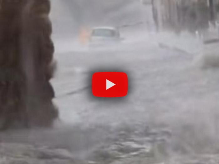 Il video in alto mostra scene impressionanti: auto bloccate, marciapiedi sommersi e l’acqua che scorre impetuosa tra le vie del centro.