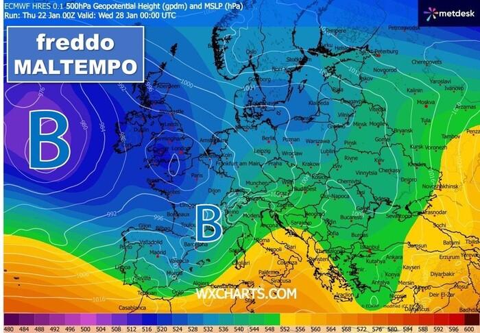 La tradizione dei Giorni della Merla (29-30-31 Gennaio) quest'anno potrebbe essere rispettata appieno. I modelli fisico-matematici suggeriscono infatti la formazione di un secondo minimo depressionario mediterraneo proprio verso la fine del mese.