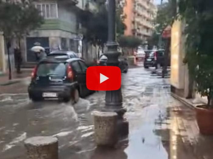 Meteo: Temporale a Salerno, strade allagate e disagi alla viabilità (Video)