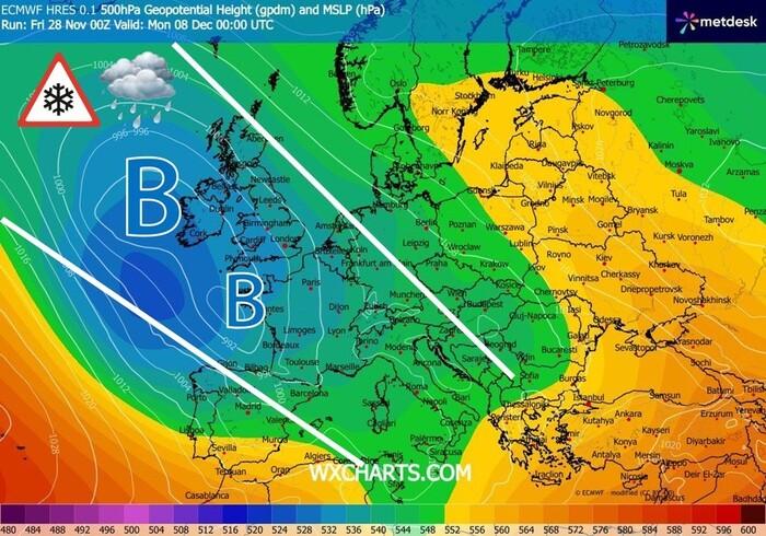 Secondo le proiezioni, a partire dalla giornata di Domenica 7 Dicembre una vasta area di bassa pressione, in discesa dal Nord Europa e sospinta da masse d'aria di origine Polare-Marittima, dovrebbe puntare dapprima le Isola Britanniche e la Francia, per poi irrompere sul Mediterraneo (e dunque anche sull'Italia). Queste correnti in ingresso sul mar Mediterraneo potrebbero favorire la formazione di un ciclone.