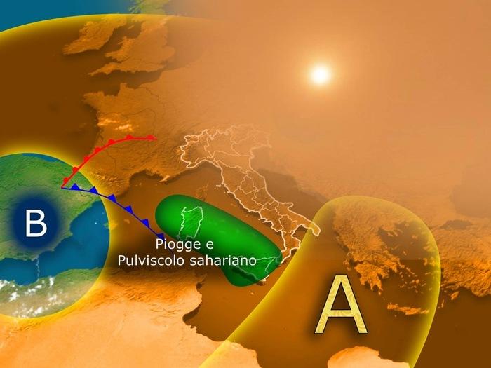 "E' colpa della sabbia del deserto. Il ciclone sta richiamando correnti sciroccali cariche di pulviscolo sahariano. Questa sabbia in sospensione è così abbondante e spinta così a nord dalle correnti d'alta quota che raggiungerà incredibilmente persino i cieli della Penisola Scandinava, rendendo l'atmosfera giallognola su mezza Europa."