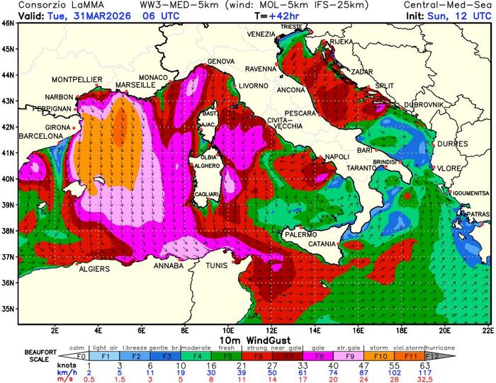 Occhi puntati da Martedì 31 Marzo quando si innescherà una nuova fase di freddo maltempo: oltre alle precipitazioni (nevose fino a bassa quota sulle regioni del Centro, specie versante adriatico) ci aspettiamo infatti forti raffiche di Grecale su Liguria e Toscana, che potranno raggiungere anche gli 80/90 km/h. Soffierà invece burrascosa la Bora sul medio e alto Adriatico con raffiche taglienti ad oltre 70 km/h.