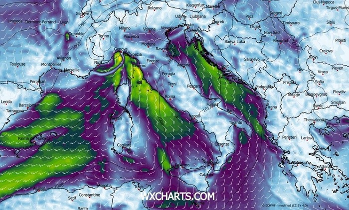 Venti di Scirocco: soffieranno con intensità crescente, interessando in particolar modo il Centro-Sud e i bacini adriatici. Sarà invece la Tramontana a dominare la scena sul Centro-Ponente ligure con raffiche anche di burrasca.