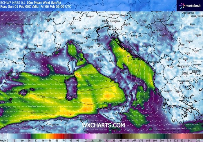 La situazione è destinata a subire un'ulteriore sterzata verso il maltempo severo nella seconda parte della settimana. Tra giovedì 4 e venerdì 5, l'ingresso di un nuovo fronte perturbato più freddo potrebbe evolvere in un vero e proprio vortice nel cuore del Mediterraneo.