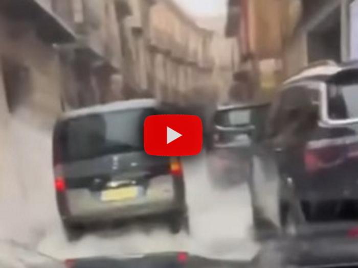 Meteo, violento temporale a Piazza Armerina: le strade si trasformano in torrenti (Video)