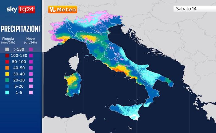 Sarà un San Valentino sotto la pioggia. Sabato 14 febbraio, infatti, il vortice sarà già pienamente operativo sul nostro Paese: ci attende la giornata più perturbata del weekend, caratterizzata da forte maltempo su quasi tutto il Paese, con precipitazioni diffuse e a tratti intense.