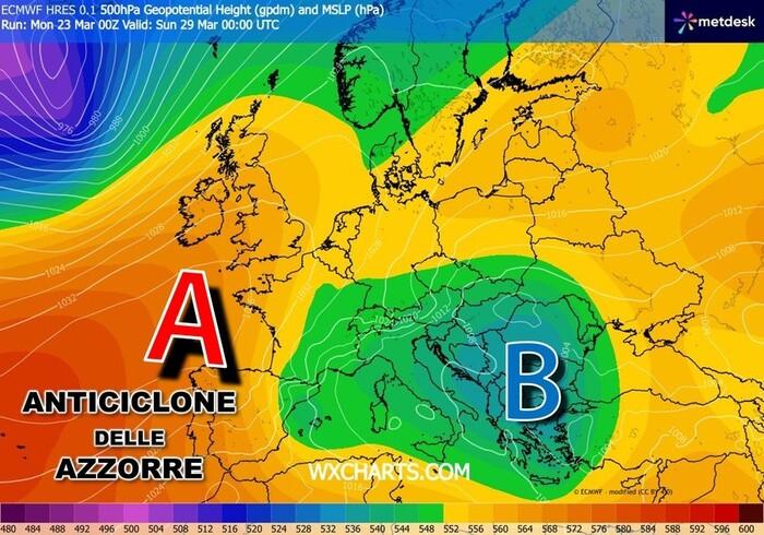 I prossimi giorni,specie la parte centrale delal settimana, si preannunciano alquanto turbolenti a causa di un'irruzione di aria molto fredda dal Nord Europa. Tuttavia proprio in avvio del prossimo weekend, nel corso di Sabato 28 Marzo, ci aspettiamo una rimonta dell'alta pressione delle Azzorre che, da ovest si allungherà fino ad abbracciare i settori occidentali dell'Italia. Oltre ad una rinnovata stabilità atmosferica è previsto un aumento delle temperature, specie nei valori massimi, al Centro-Nord con punte oltre i 15°C. Di notte e al primo mattino ci sarà invece ancora da battere i denti con temperature fin sotto i 5°C (a Torino nelle valli interne del Centro si sfiorerà lo zero!).