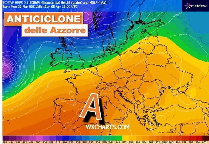 Una svolta netta è attesa proprio in vista del weekend di Pasqua (Sabato 4 e Domenica 5 Aprile): è ormai infatti confermata l’espansione e il rinforzo di una vasta area anticiclonica di origine oceanica, ovvero il ritorno dell’alta pressione delle Azzorre, pronto a distendersi su gran parte dell’Europa occidentale e a coinvolgere anche il nostro Paese.