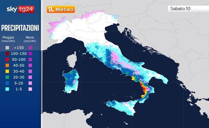 Il peggioramento influenzerà in particolare il Centro-Sud, dove non mancheranno piogge battenti e fortissimi venti di Maestrale. Tra Campania e Calabria non escludiamo il rischio di veri e propri nubifragi. A causa del calo delle temperature tornerà pure la neve, fino in collina su bassa Toscana, Lazio, Marche, Abruzzo e Molise.