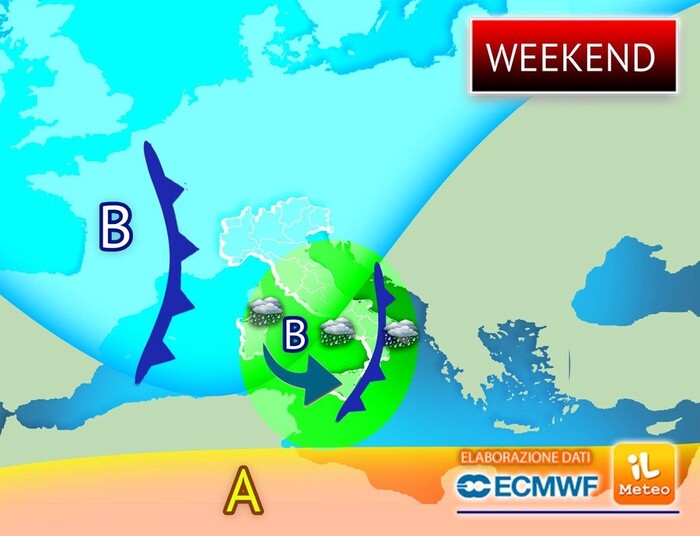 L’assenza di un'alta pressione solida sul bacino del Mediterraneo e il conseguente afflusso di umide e turbolente correnti atlantiche verso il nostro Paese favoriscono un pressoché continuo andirivieni di fronti depressionari forieri di maltempo.