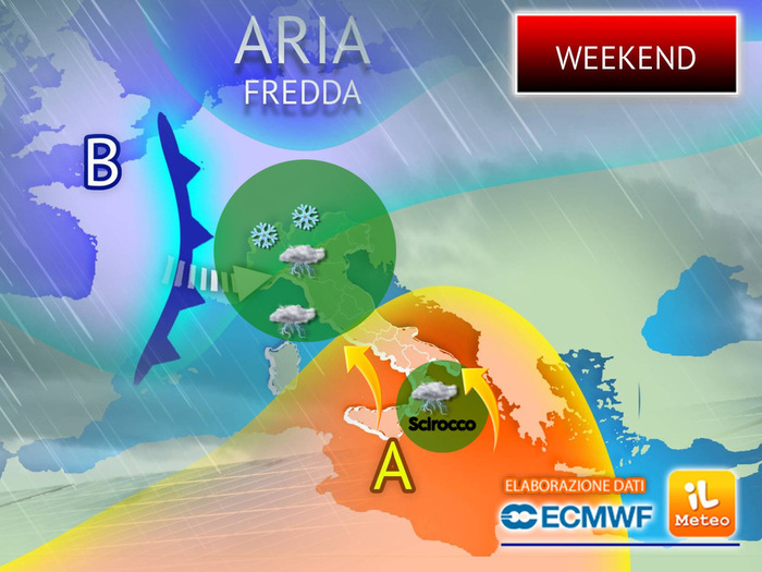 Le condizioni meteo sono previste in peggioramento già dalla vigilia del fine settimana e la causa va ricercata nelle grandi manovre in atto a livello emisferico, con la formazione di cicloni in discesa dall'Oceano Atlantico e in rotta di collisione con il Vecchio Continente e il bacino del Mediterraneo.