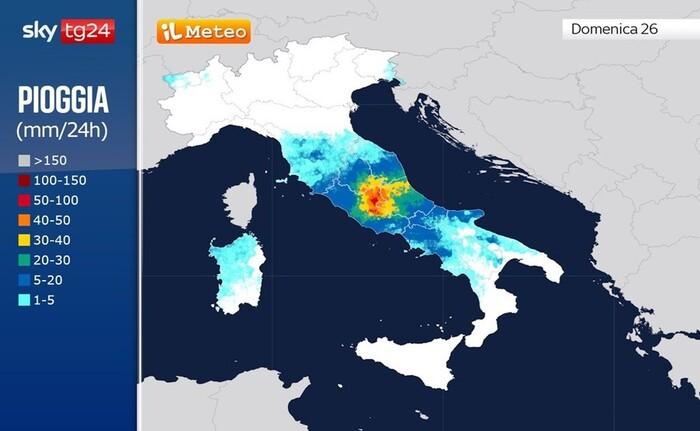 Le zone più a rischio saranno le Marche, l'Abruzzo, l'Umbria, il Lazio, la Campania dove non sono da escludere dei veri e propri nubifragi. Qualche precipitazione potrà interessare anche la Puglia.