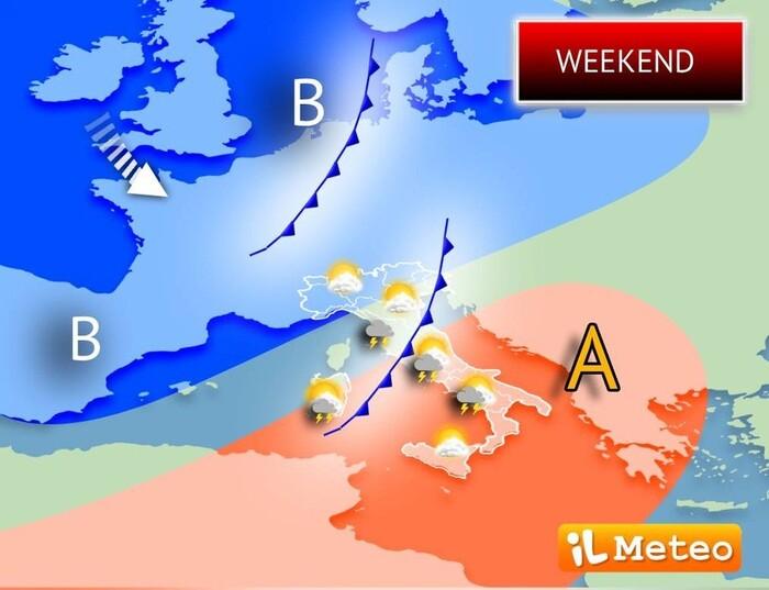 Tra la serata di Sabato, la successiva nottata e le prime ore di Domenica 26 Ottobre, tuttavia, sarà di nuovo pioggia, a causa di un'insidiosa perturbazione carica di precipitazioni, anche a carattere temporalesco, che colpirà specialmente il Centro-Sud.