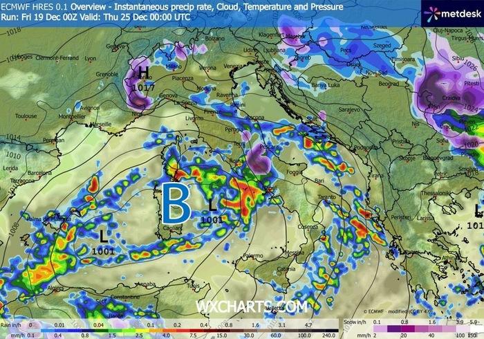 Non è escluso che si possa formare una ciclo-genesi sui nostri mari proprio in concomitanza con la giornata di Natale, in grado di provocare tanta pioggia specie al Nord Ovest, su buona parte del Centro-Sud e sulle Isole Maggiori. Ci attende una parentesi natalizia all'insegna delle precipitazioni e sul versante tirrenico, ma al tempo stesso anche della neve sulle Alpi, a tratti anche abbondante, con fiocchi a partire dai 7/800 metri di quota (su questo avremo modo di essere più precisi nei prossimi aggiornamenti).