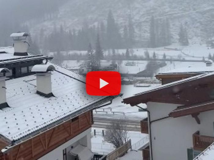 Neve a Canazei, i fiocchi tornano ad imbiancare le piste della Val di Fassa (Video)