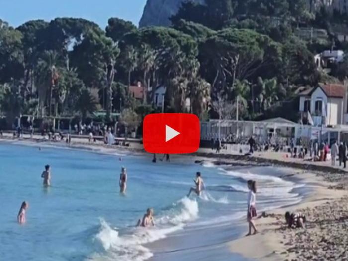 Protagonista assoluta è Mondello, la celebre spiaggia alle porte della città, apparsa gremita come nei mesi estivi. Tra asciugamani stesi al sole e passeggiate sul bagnasciuga, c’è chi approfitta della giornata per concedersi un po’ di tintarella e chi, più audace, non rinuncia a un tuffo in mare. Non mancano i bambini intenti a giocare con la sabbia, mentre l’atmosfera richiama più un pomeriggio di giugno che una giornata di fine dicembre.