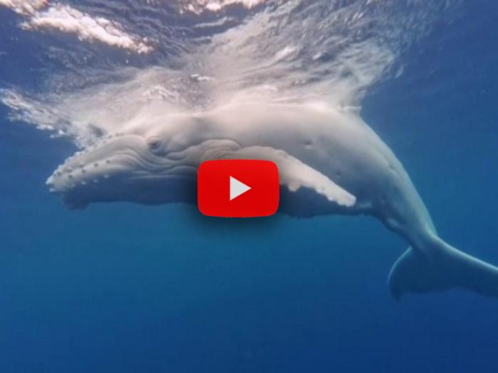 Le immagini mostrano la piccola megattera con pelle chiarissima e occhi rossi, dettaglio che distingue l’albinismo dal semplice leucismo, condizione in cui la pelle è priva di pigmenti ma gli occhi restano colorati.