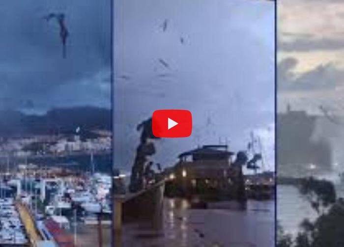 Il vortice, accompagnato da venti molto forti, ha investito l’area portuale e la fascia costiera, scaraventando alcune barche, danneggiando imbarcazioni ormeggiate e provocando la distruzione di terrazze affacciate sul mare, pergolati e strutture leggere. Numerosi detriti sono finiti sulle strade costiere, rendendo necessario l’intervento immediato delle squadre di soccorso.