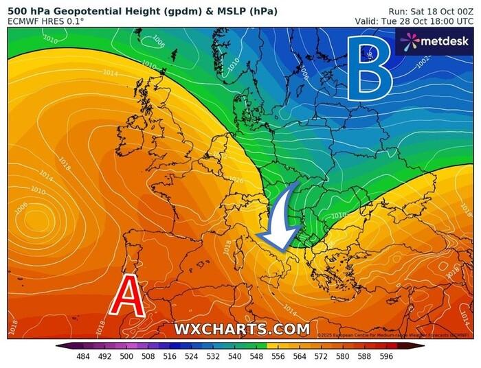 Dopo una breve ma intensa fase di maltempo attesa ina avvio della prossima settimana, dal 25 Ottobre in avanti è attesa una nuova svolta grazie alla rimonta di un vasta alta pressione destinata a riguadagnare lo spazio perduto.