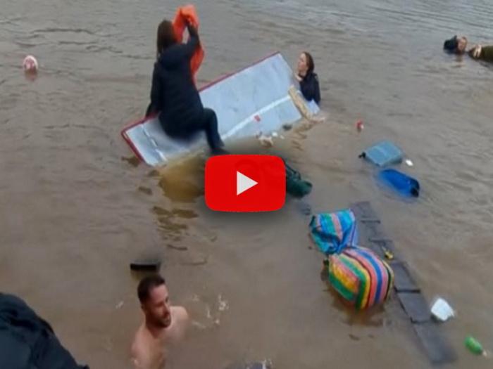 Secondo le prime ricostruzioni, l’imbarcazione ha perso stabilità subito dopo l’impatto, scatenando il panico tra i passeggeri. In pochi minuti la situazione è precipitata: urla, persone finite in acqua e tentativi concitati di mettersi in salvo.